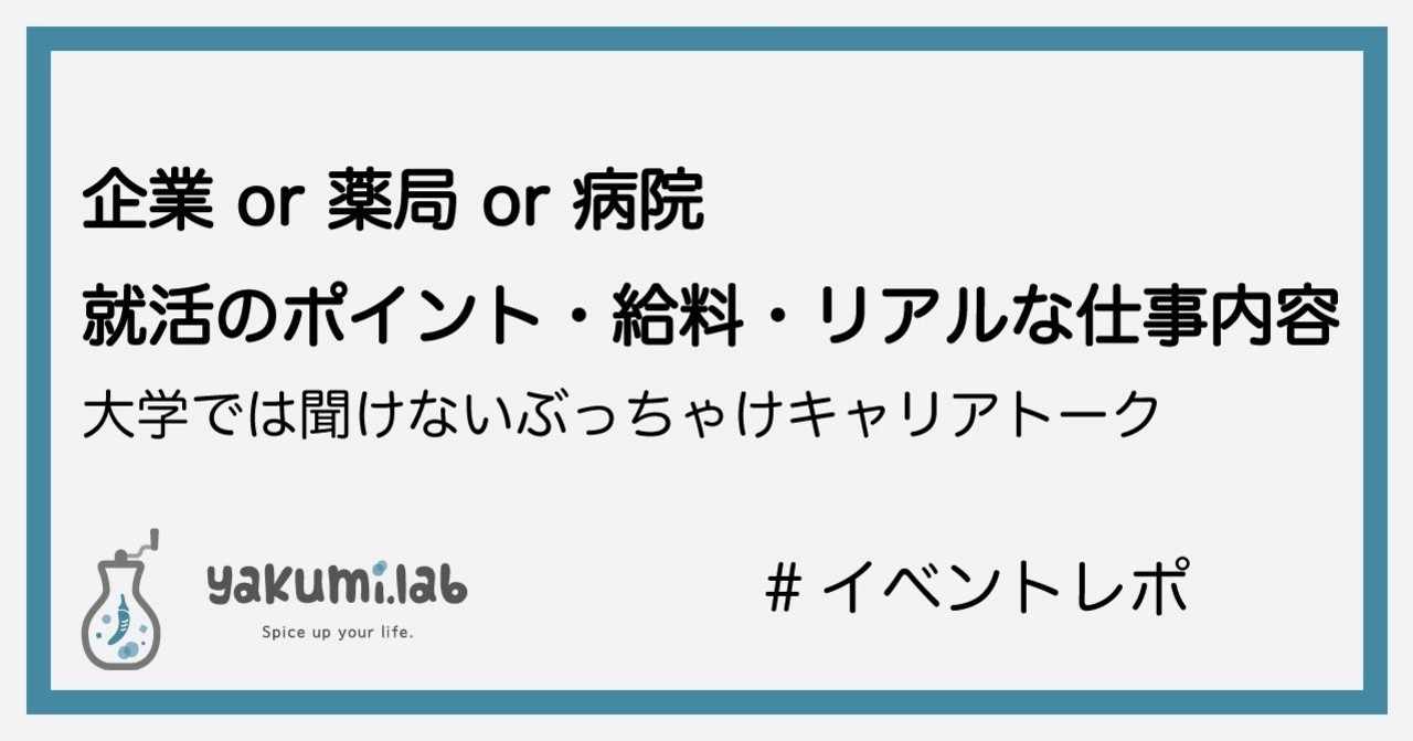 イベントレポ 企業 Or 薬局 Or 病院 就活のポイント 給料 リアルな仕事内容大学では聞けないぶっちゃけキャリアトーク ヤクミラボ Note