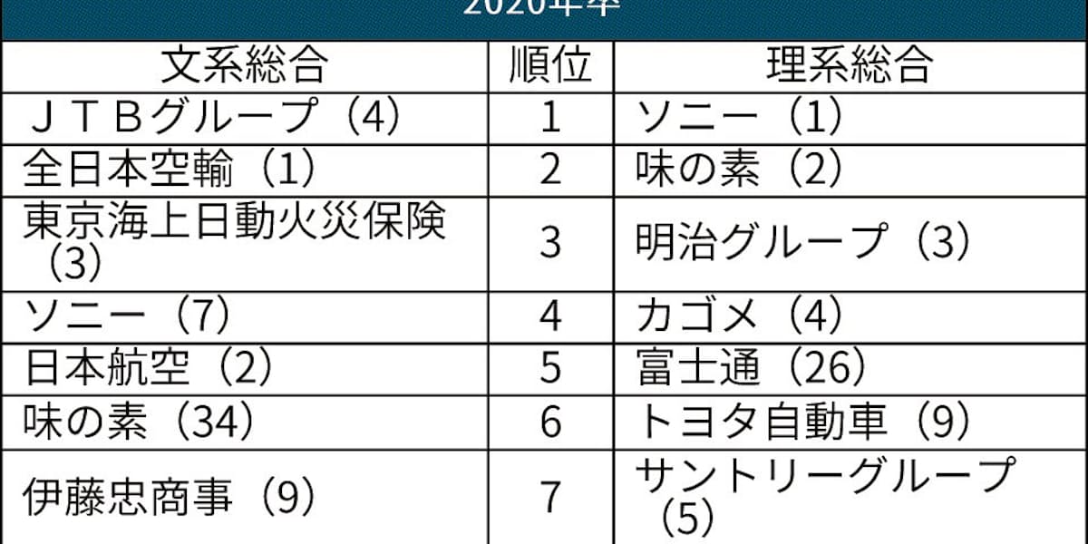 就職人気ランキング Jtb ソニー首位 日本経済新聞