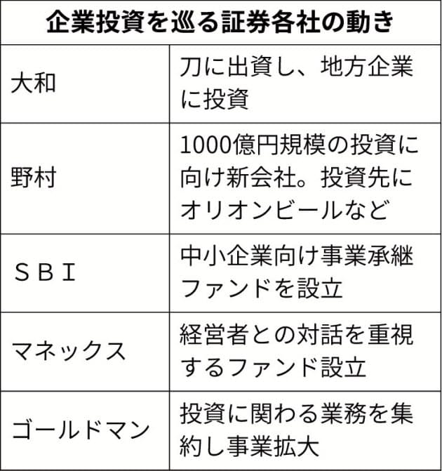 大手証券 企業投資を拡大 日本経済新聞