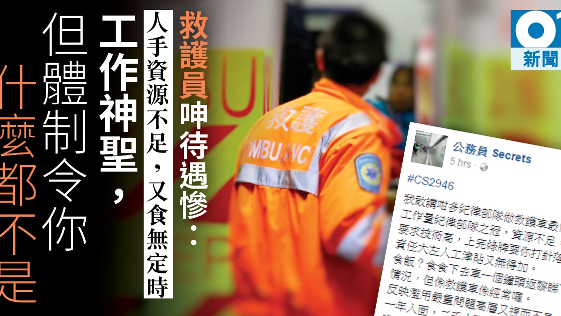 救護員facebook大控訴呻待遇為紀律部隊中最慘終選擇轉部門 香港01 社會新聞
