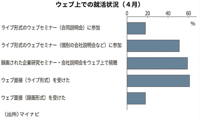 就活生の6割がウェブ面接 前月比ポイント増 マイナビ 日本経済新聞