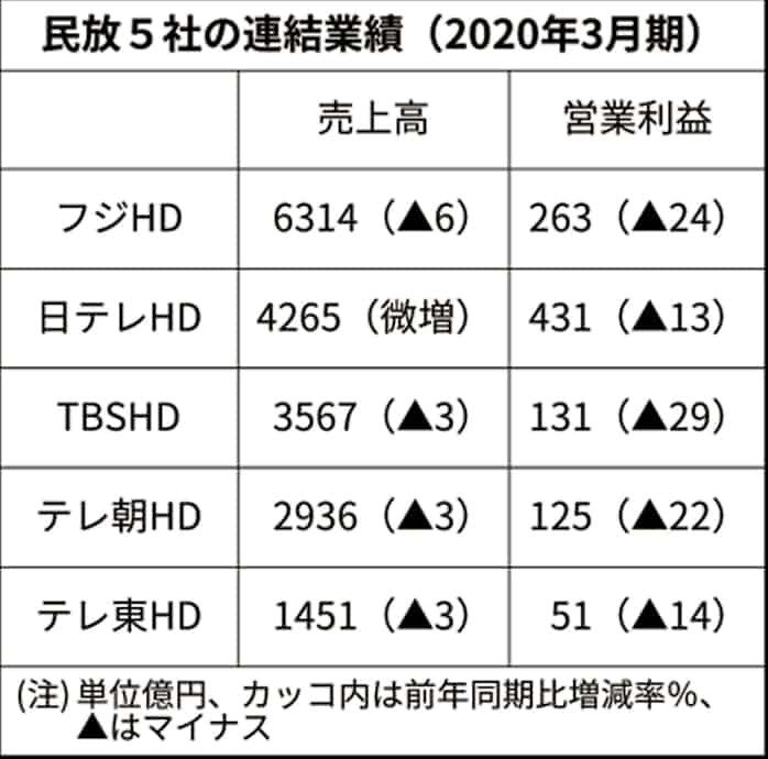 民放キー局 5社とも営業減益 広告収入振るわず 日本経済新聞