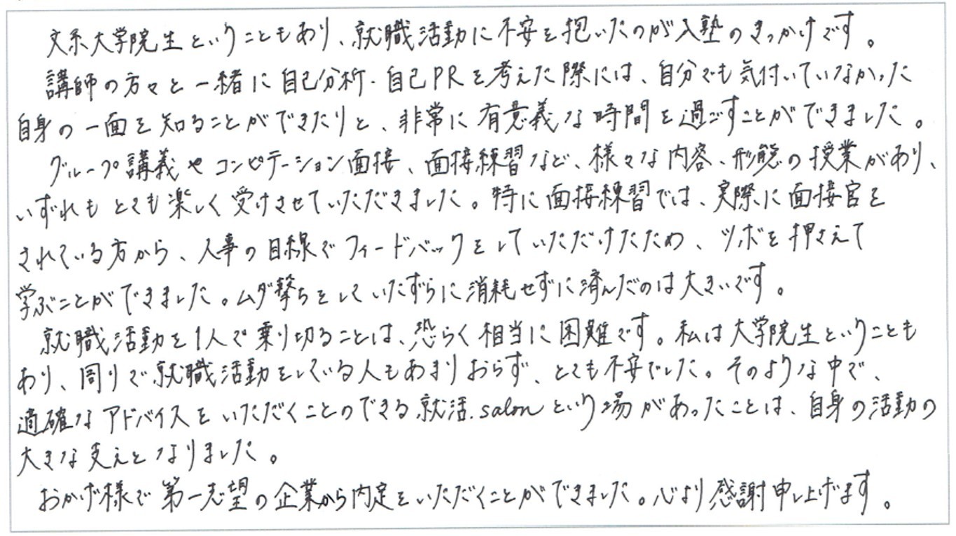 内定実績 就活塾 就職塾 就職予備校なら 就活 Salon
